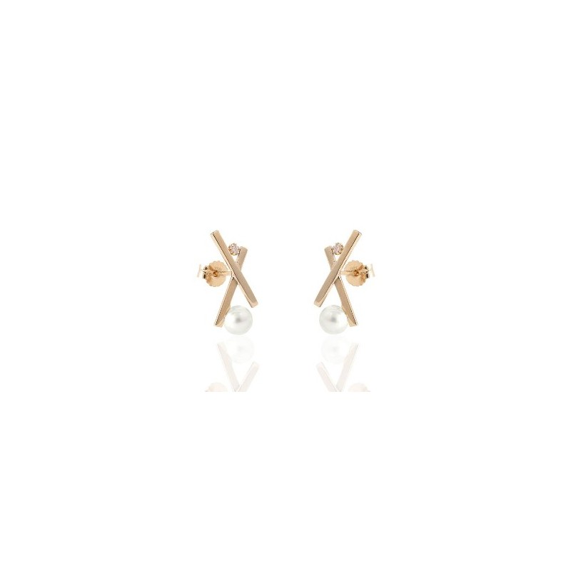 Pendientes fabricados en Oro amarillo de 18kt, perlas naturales y circonitas.