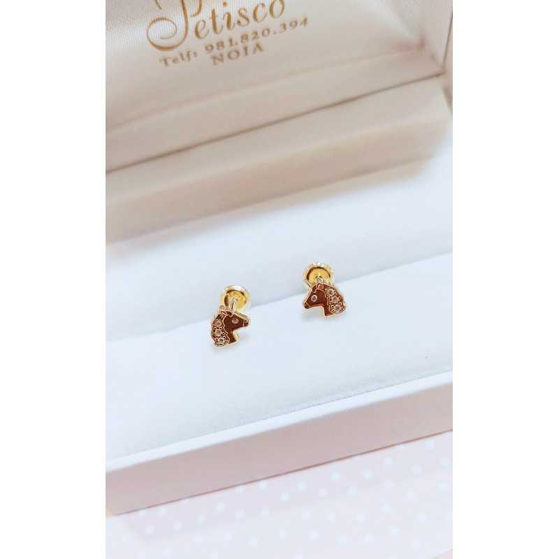 Pendientes niña con forma de unicornio fabricados en oro amarillo de 1ªLey de 18kt y circonitas