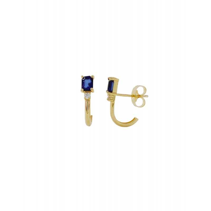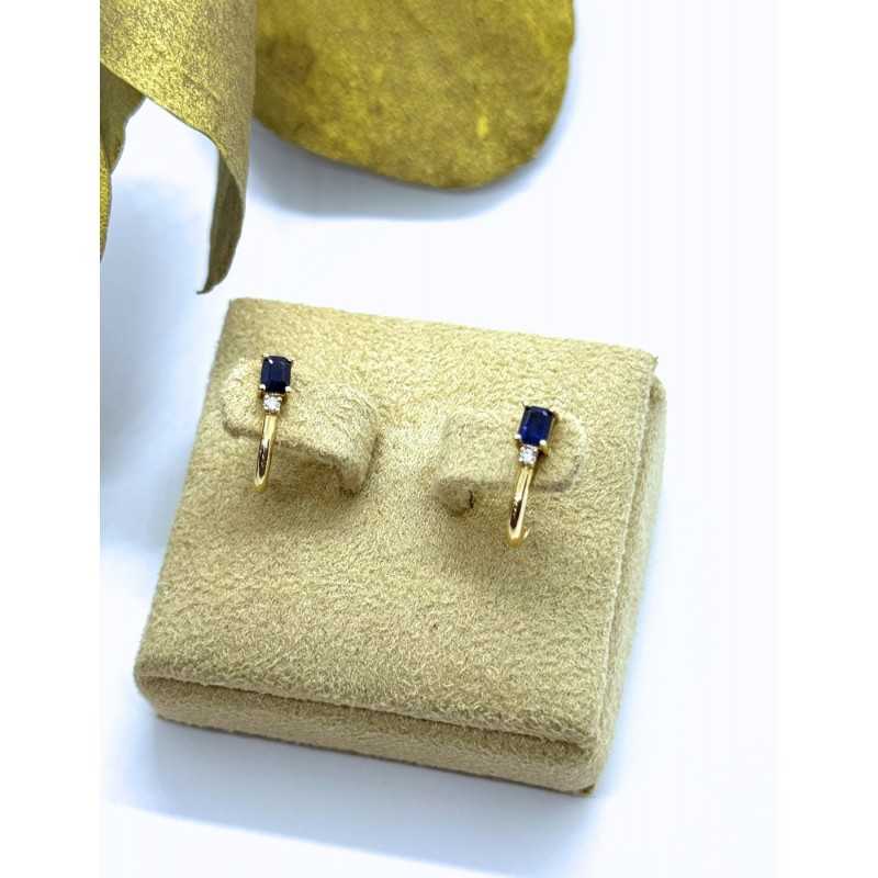 Pendientes fabricados en Oro Amarillo de 18kts en forma de aro donde en su parte superior posee zafiros y diamantes naturales.