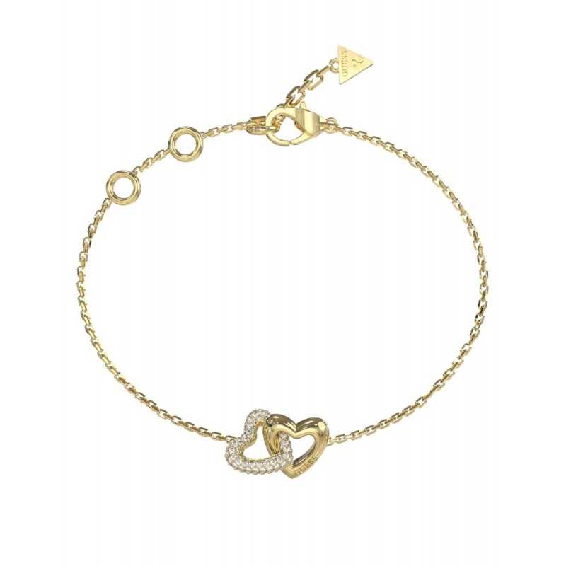 Pulsera dorada de cadena sencilla con corazones entrelazados emulando el símbolo del infinito.