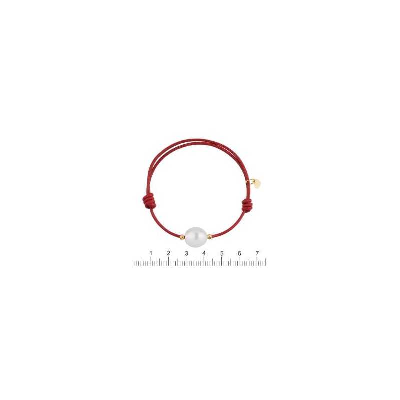 Pulsera de cuero ajustable color burdeos con perla central, bolitas y colgante con forma de corazón de Oro de 1ª Ley de 18kts.